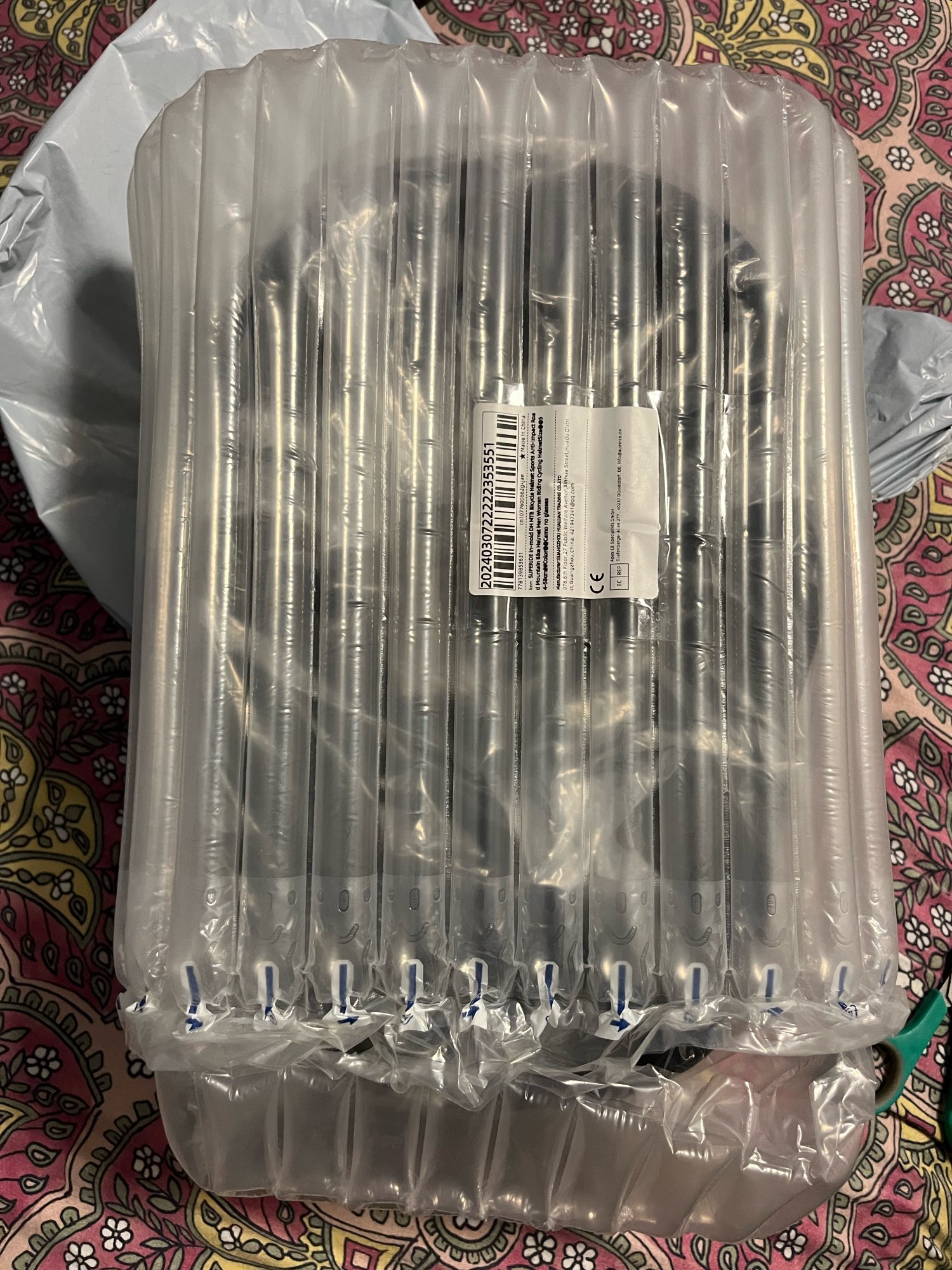 Muy buen casco, contento con esta compra. El casco vino en una bolsa tipo plástico de burbujas. Entrega rápida. Tiene certificación CE, viene con etiquetas y rótulos del producto (ver fotos). Diadema ajustable y almohadillas lavables. Comprado para la cabeza de un niño de 12 años. Tamaño.