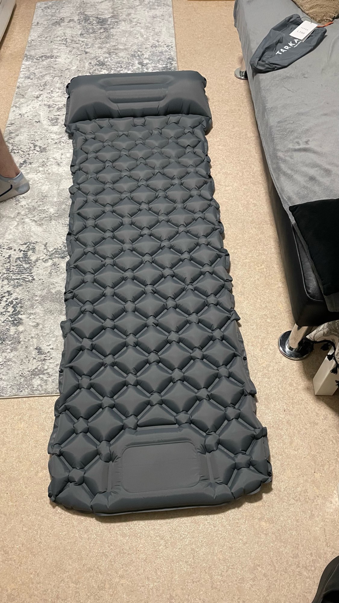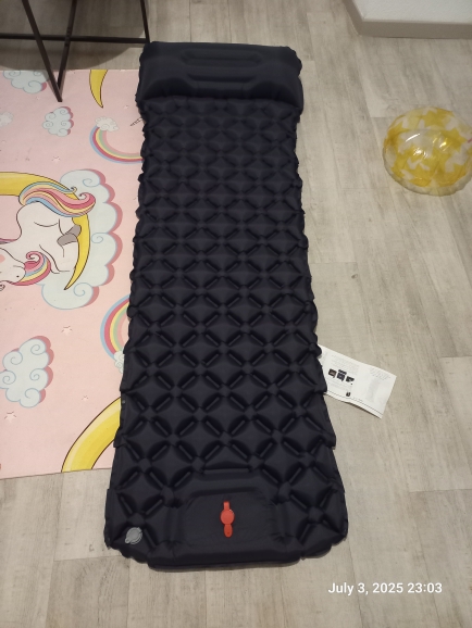 Es bastante cómodo, para una breve salida de camping es genial. Cuando estás acostado sobre él y el peso se distribuye uniformemente por todo el colchón, es muy cómodo. Se necesitan 3 minutos para inflarse, 5 min. desinflar y doblar, increíble. La calidad del material parece buena, veremos cuánto dura. Llegó en 7 días a Francia, ¡lo cual es increíble! Estaba bien embalado y sellado dentro de una bolsa de plástico. Es muy ligero, casi cabe en un bolso. Definitivamente lo recomiendo, al menos en el primer intento.