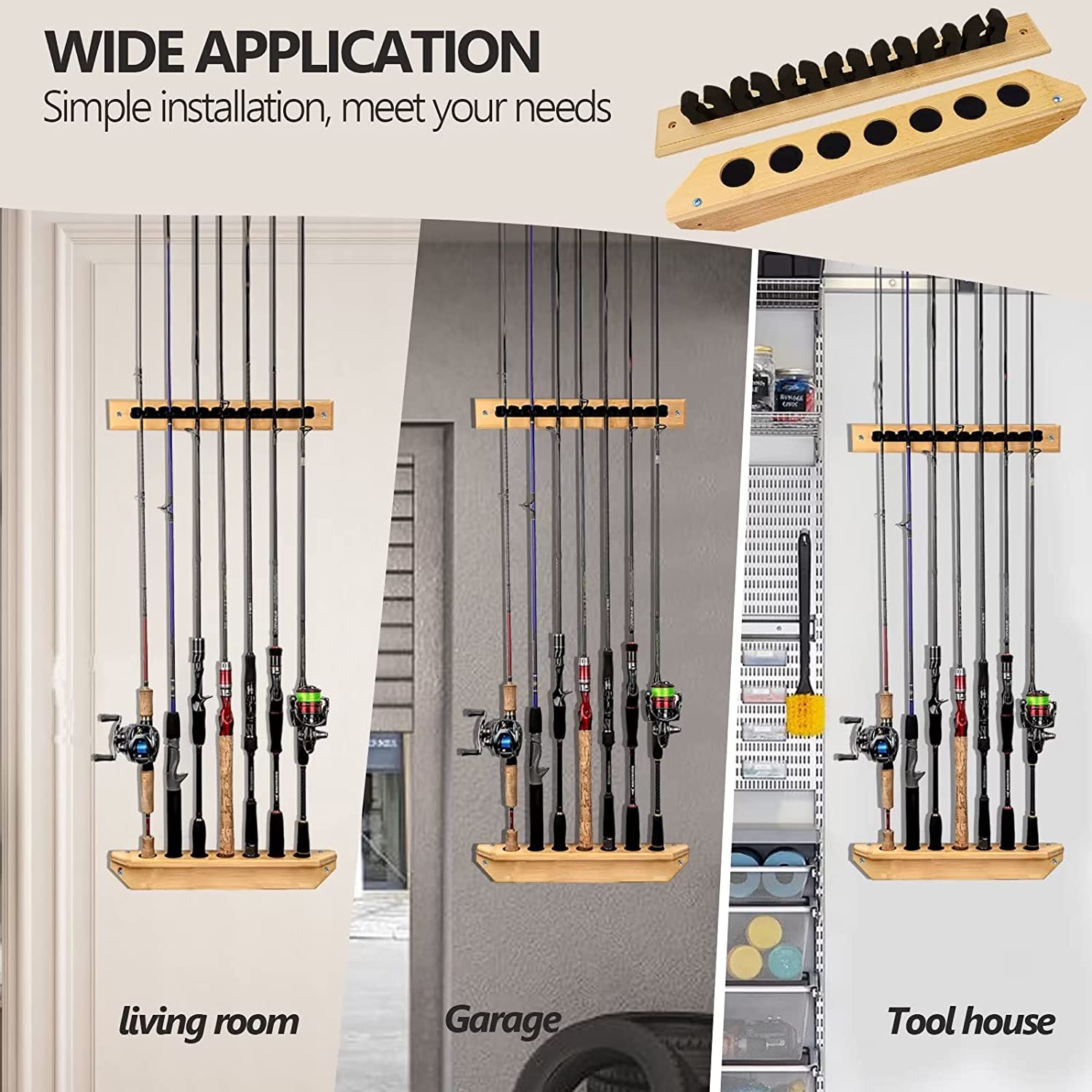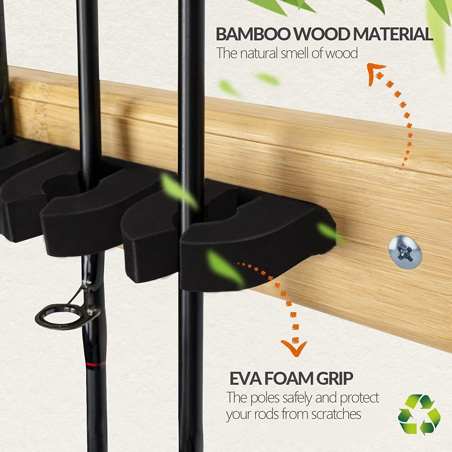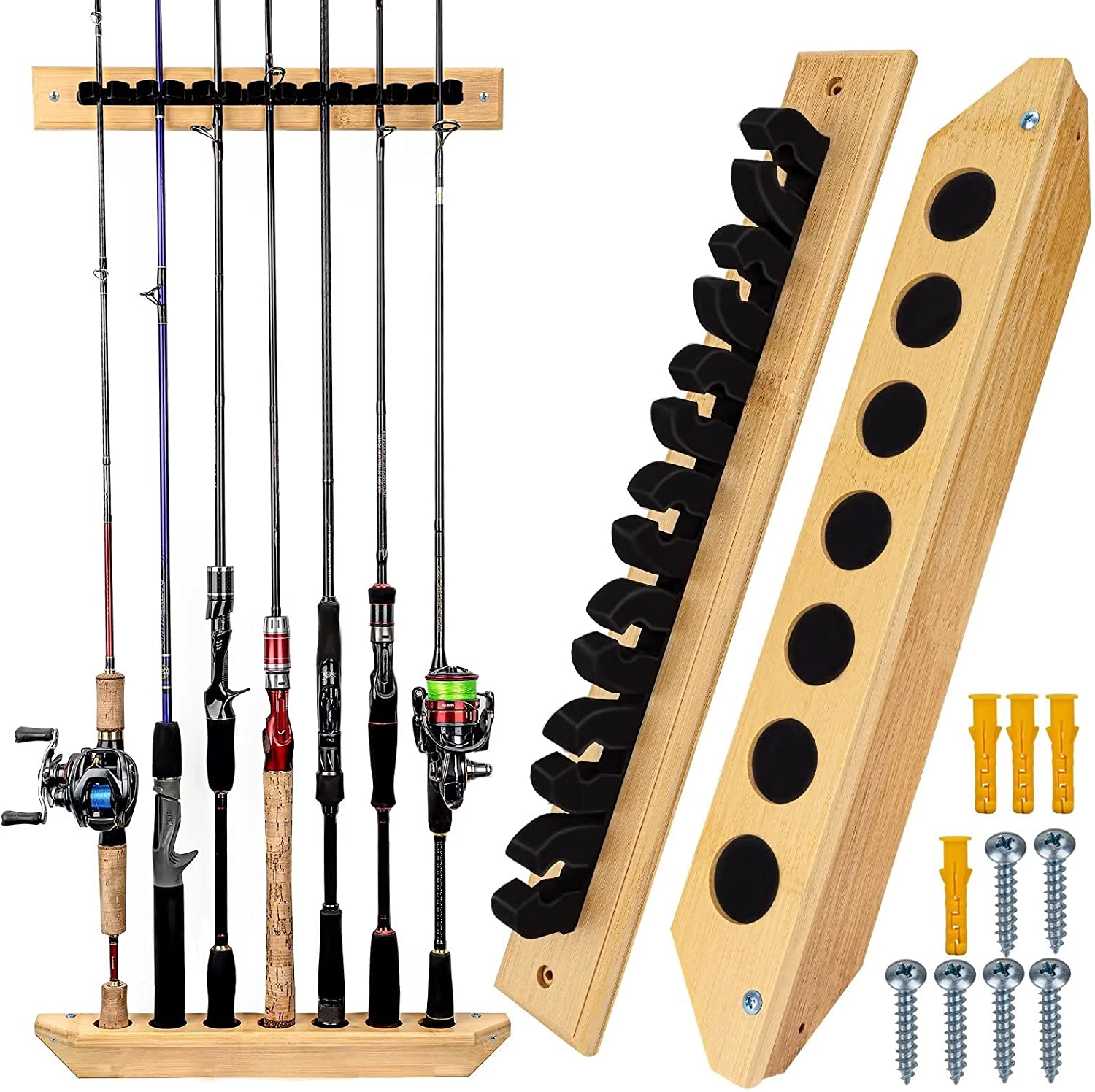 Organiza tu equipo con este estante de pared para cañas de pescar, fabricado en elegante madera de bambú. Permite montar hasta 7 verticalmente, ahorrando espacio y evitando enredos o daños. Las empuñaduras de espuma protegen tus cañas, mientras que las ranuras inferiores con esponja previenen arañazos y deformaciones. Ideal para garajes, cobertizos o casas. Compatible con cañas spinning, baitcasting, de mosca. Incluye un par de soportes ajustables para adaptarse a distintas longitudes. Fácil instalación y gran durabilidad.