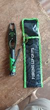 Pinza de pesca fabricada en aleación de aluminio, resistente y ligera. Soporta hasta 15 kg de peso y cuenta con empuñadura ergonómica de 28,8 cm en color negro con verde. La apertura máxima es de 37 mm y su peso neto es de 228 g. Incluye cuerda antipérdida con sistema telescópico para mayor seguridad. Ideal para pesar y sujetar peces con facilidad en cualquier entorno. Incluye 1 pinza de pesca. Compacta, funcional y duradera.